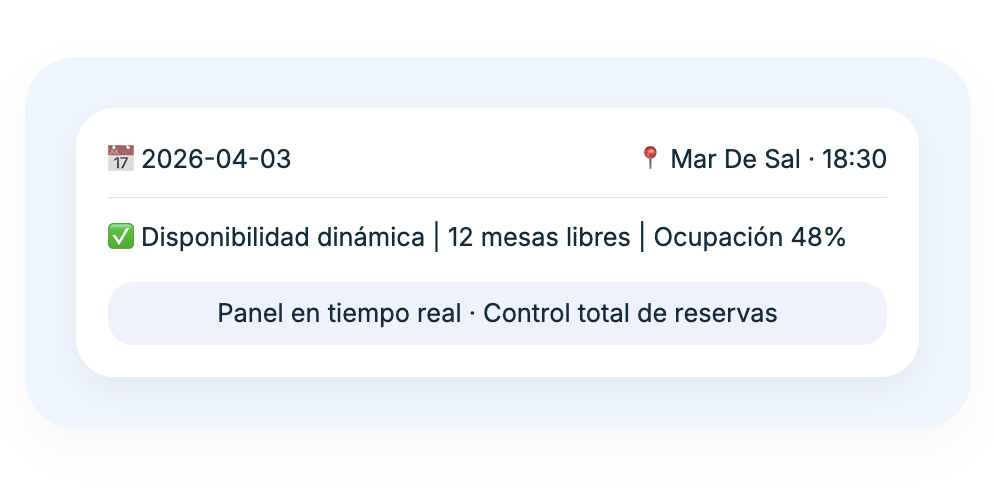 Aumentas la rotación sin saturar el servicio, menos mesas vacías, más ingresos por cubierto.